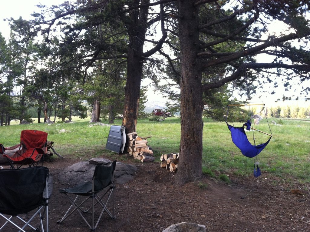 - A large, relatively flat camp fire ring area with room for camp kitchens