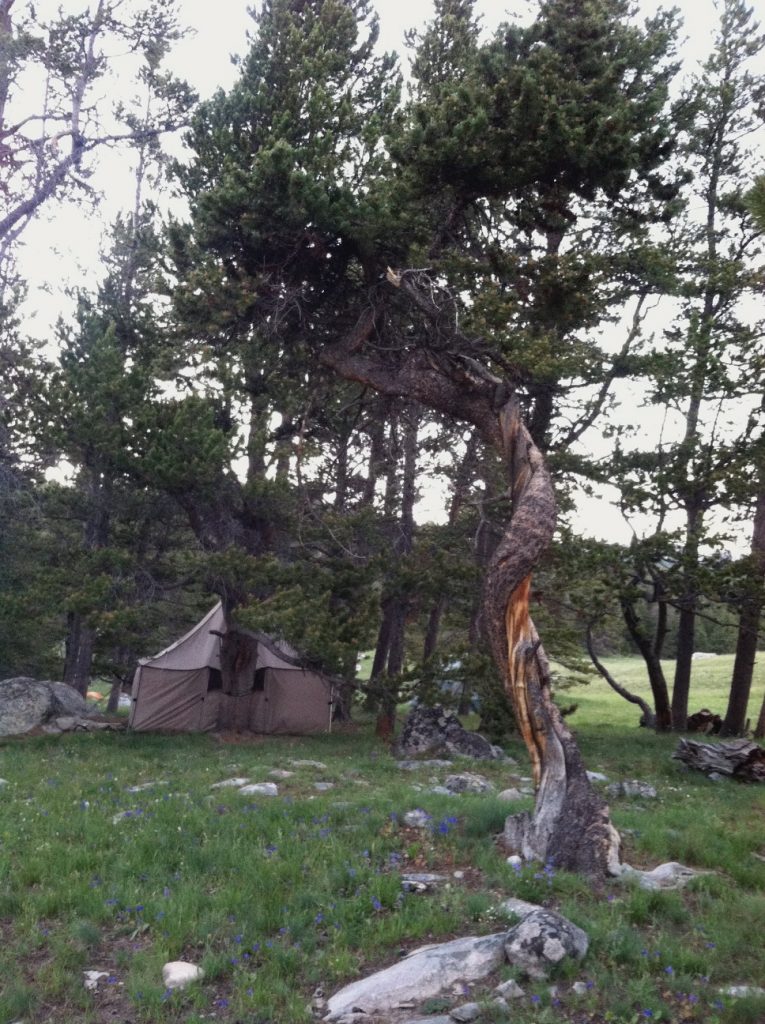 • A large, relatively flat camp fire ring area with room for camp kitchens